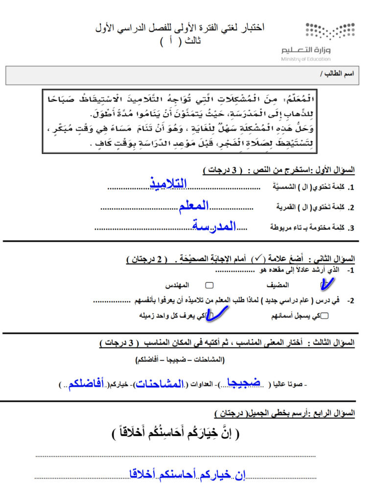 تحميل اختبار لغتي ثالث ابتدائي الفصل الاول اضغط هنا للتحميل